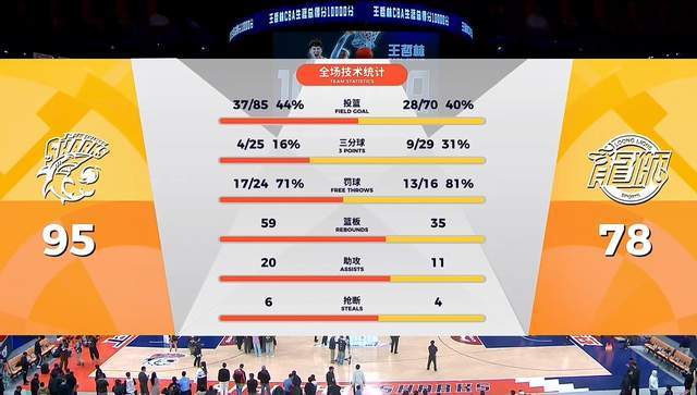 上海队到了第四节终于真正的爆发了,王哲林更是砍下了职业生涯的10000分,成为CBA史上第六人,大王直接把这场比赛的进球收藏了。凭借末节23-9,最终,上海队主场以95-78强势逆转击败了广州队,拿到了一场宝贵的胜利。